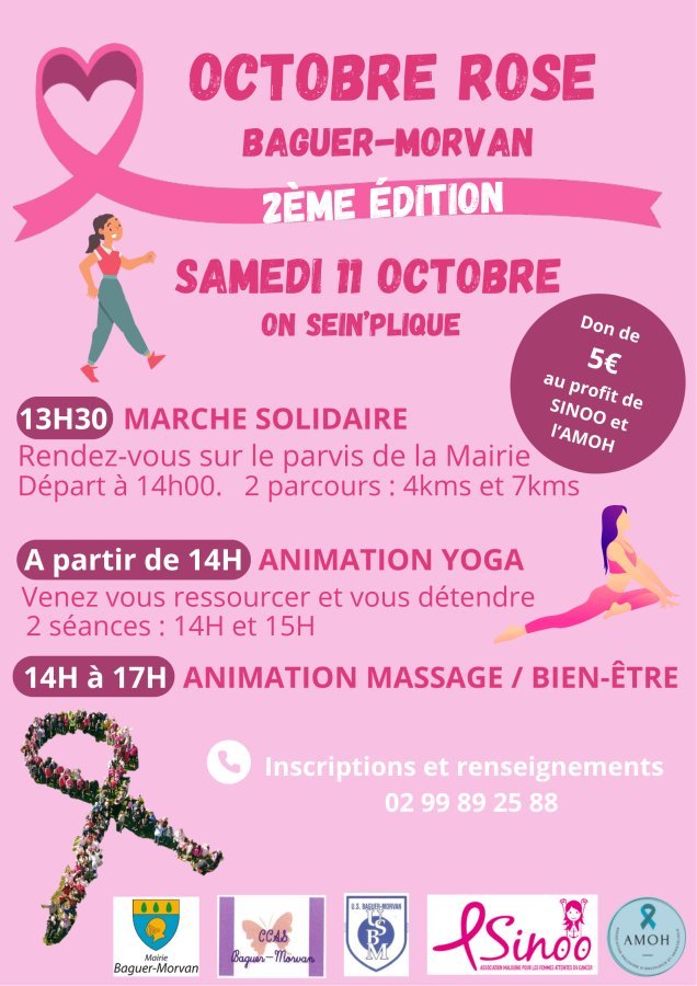 Grâce à plus de 200 participants lors des animations pour Octobre Rose, deux chèques de 950 € chacun ont été remis aux associations SINOO (association malouine pour les femmes atteintes d'un cancer) et AMOH (association malouine d'oncologie hématologie).