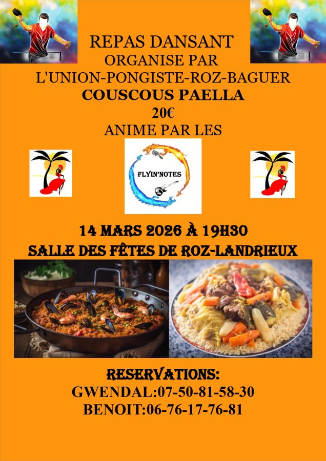 Repas Dansant le 14 mars 2026 - Couscou Paella